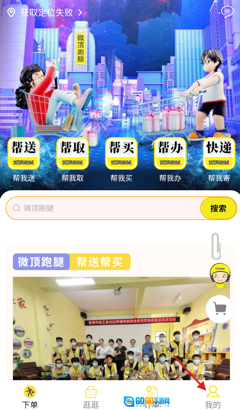 1、打开微顶跑腿应用,进入主界面后,点击底部菜单栏里的“我的”选项。