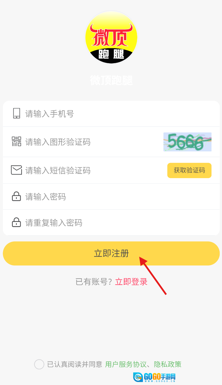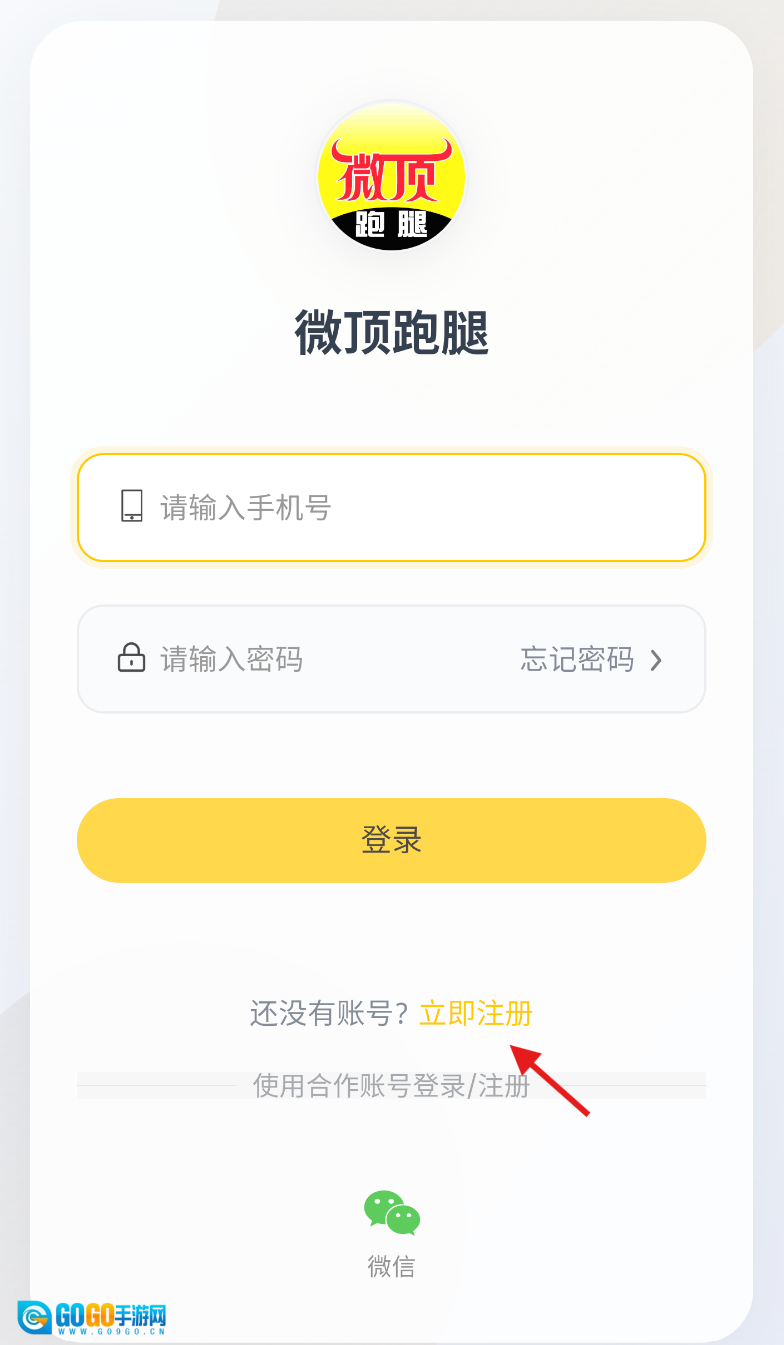 1、安装注册:在手机应用商店搜索“微顶跑腿”APP,下载安装完成后,通过手机号进行注册并登录账号。