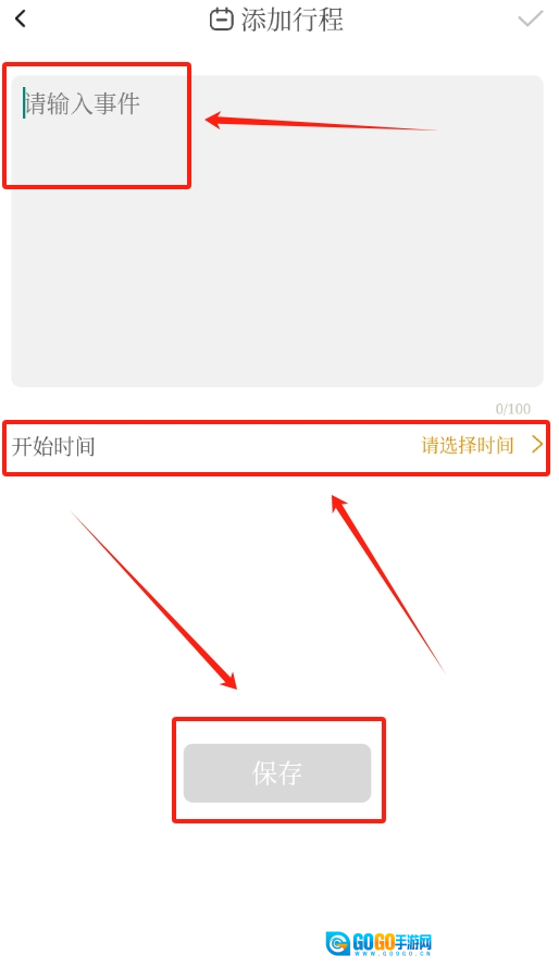 3、进入日程编辑页面后,先填写需要记录的事件内容,再设置好相应的日期,全部操作完成后点击保存按钮就可以了。