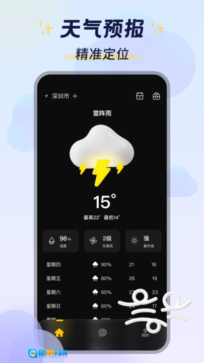 1、天气预报助手可提供精准的一周天气预报服务,包含湿度、风向、空气质量等详细气象信息,还能精准定位城市坐标。