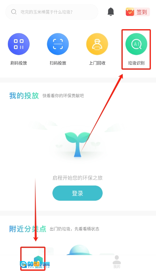 成功登录后,界面会自动跳转回首页,在首页的众多功能图标里,找到“垃圾识别”选项并点击它。