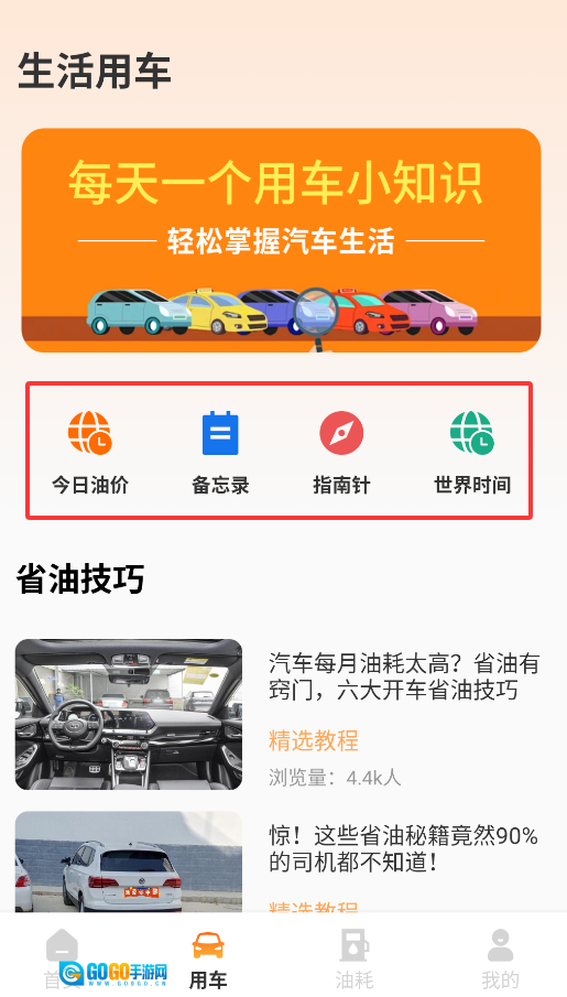 2、“用车服务”涵盖实时油价查询、行车备忘录、指南针等功能,为用户提供一站式的驾驶辅助工具支持。