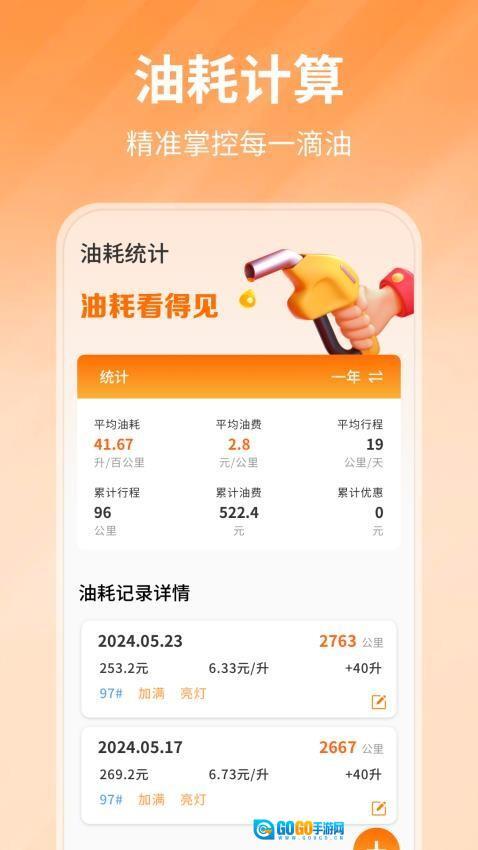 2、油费分析系统:只需录入行驶里程和加油量,就能生成可视化报表,通过对比历史数据来掌握油耗的变化情况。