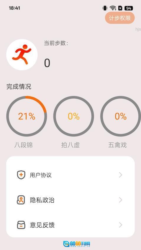 登录应用后,主界面会自动呈现当日的行走步数、消耗卡路里等健康指标的统计图表。