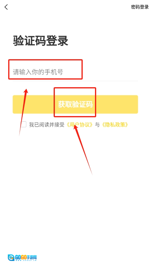 1、启动文玩鉴宝应用,在登录页面找到手机号验证码登录的选项,输入手机号并获取验证码,以此完成登录操作。