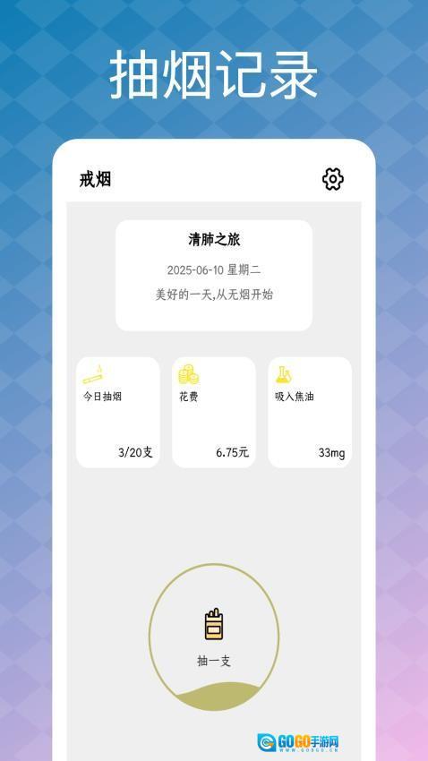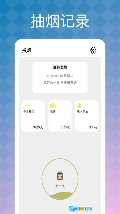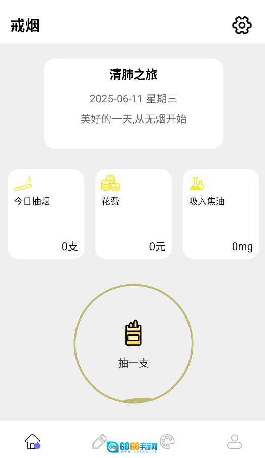 启动模拟抽烟功能后,首页会展示当日的戒烟状态,以此鼓励用户坚持无烟习惯。