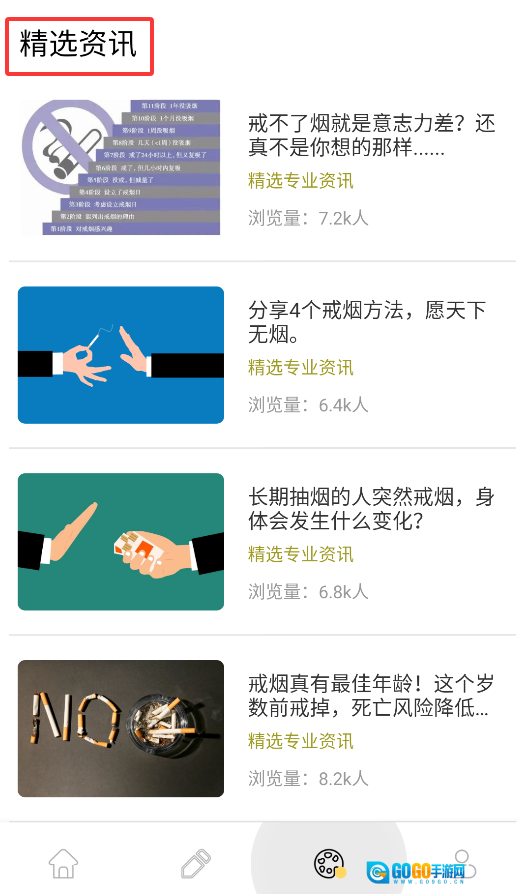 3、“健康资讯”板块会提供戒烟技巧、肺部恢复等科普文章,以此辅助戒烟。