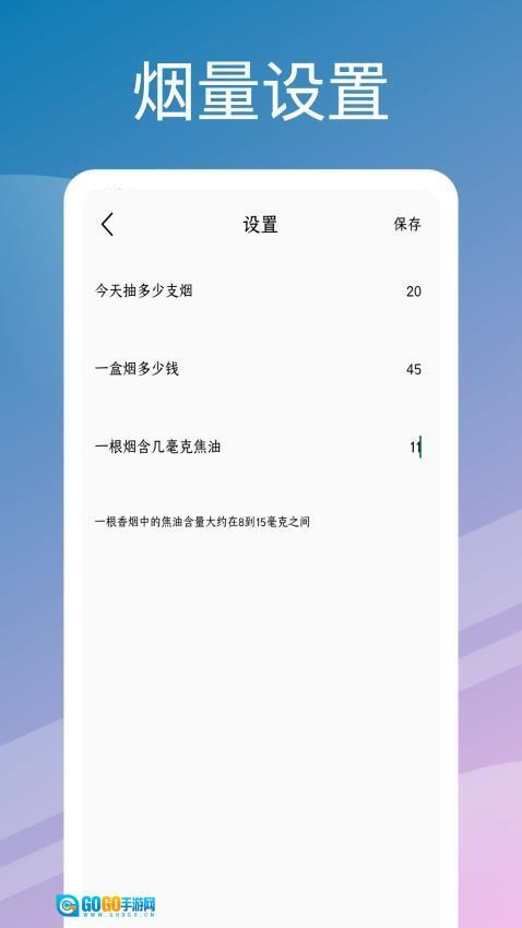 模拟抽烟这个工具真的很实用,打算戒烟的朋友们不妨了解一下!它能帮你记录每日的吸烟数量,还能计算摄入的焦油总量。你可以自行设定每日吸烟目标,通过日历打卡的方式,逐步减少吸烟量。里面还收录了不少实用的戒烟技巧,空闲时看看会很有帮助。坚持使用一段时间,确实能有效减少吸烟频率。正在戒烟的朋友们,赶紧试试吧。