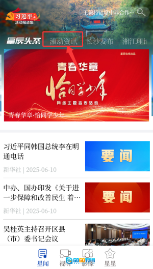 1、打开星辰头条应用,进入首页后在顶部导航栏点击“资讯”频道,该频道会实时推送各类热点新闻资讯。