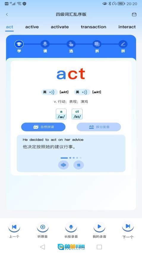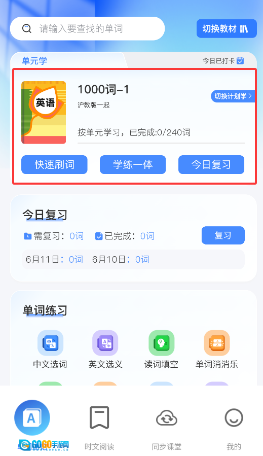 启动应用后,进入“学练一体”界面,就能快速查找目标词汇并查看其详细解析。