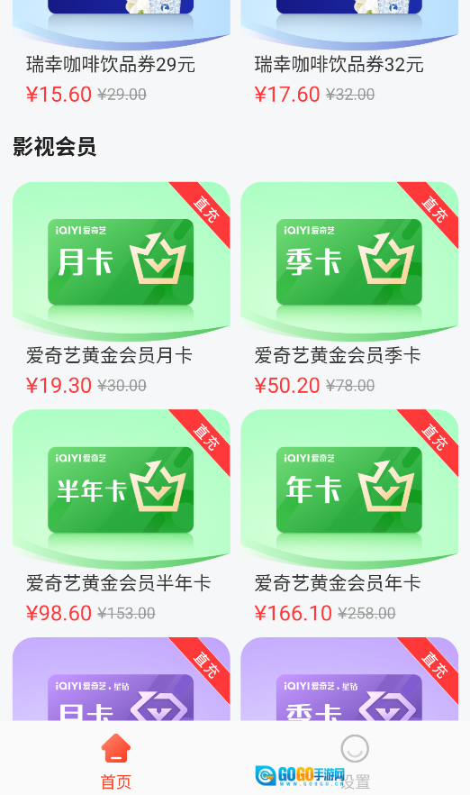 1、打开淘淘快购,首页呈现餐饮优惠券、视频会员、出行服务等多种优惠商品。