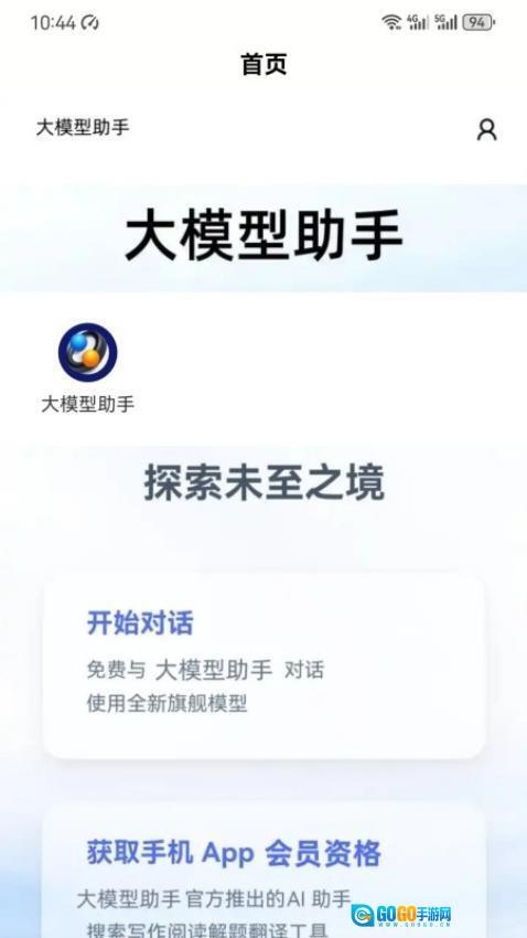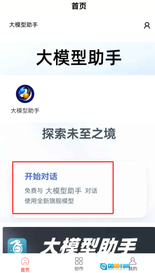 1、打开大模型助手应用,在首页找到并点击“开始对话”按钮,即可进入智能交流界面。