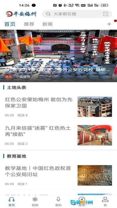 1、在手机应用商店里搜索“平安梅州”并进行安装,安装完成后打开该应用,进入软件的主界面首页。