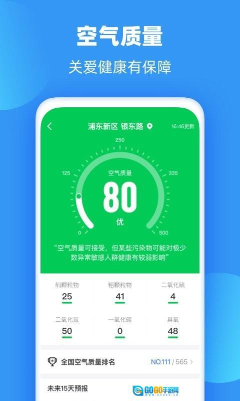 2、15天天气预报功能,预报时长足够充裕,能提前提醒未来多天的降温、降雨趋势,助力你更全面地掌握天气信息。