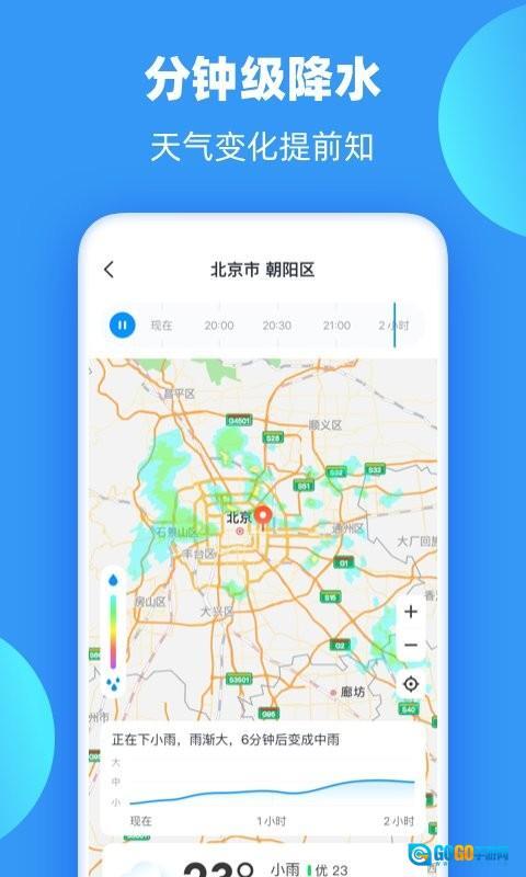 2、具备2小时雨雪实况监测与分钟级降水预报功能,可精准预测降水的起止时间,助你提前掌握天气变化节奏。