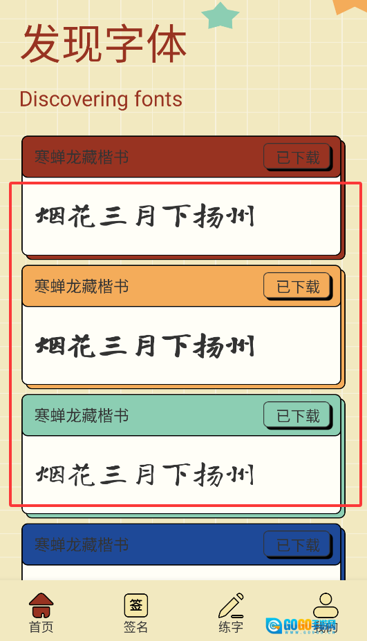 2、字体资源丰富且专业度高,尤其是商务签名模块,备受职场人士的喜爱与认可。