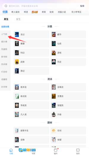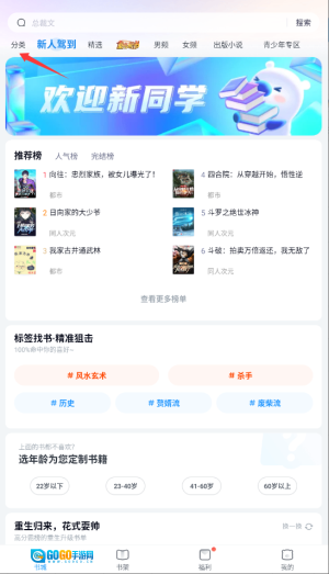 进入米读小说后,在首页顶部的导航栏里找到“分类”入口并点击,这里集中了各种类型的小说专题榜单。