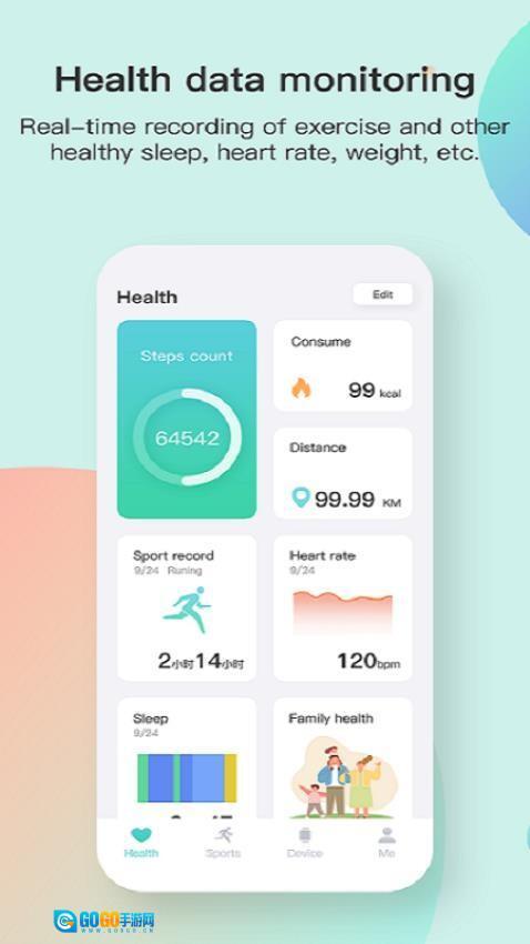 3、目标设定:可自主设置每日步数、运动时长等个性化目标,系统会推送完成度提醒及达标奖励通知,助力用户养成健康的生活习惯。