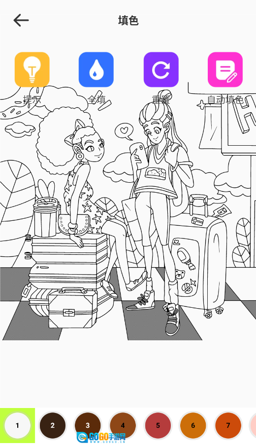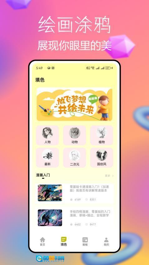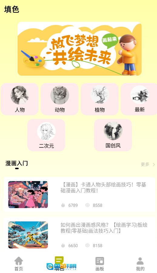 启动后,在主页导航栏找到“填色绘画”功能入口并点击进入创作界面。