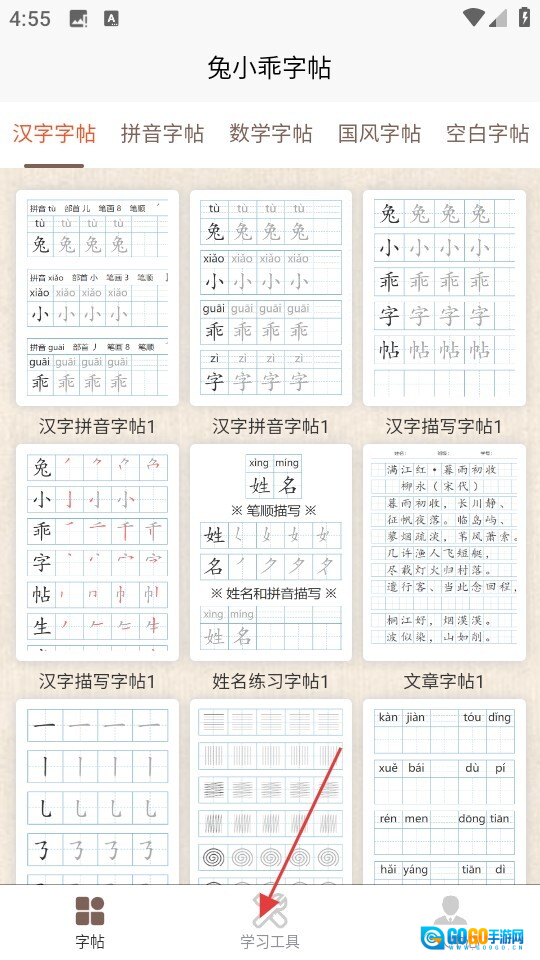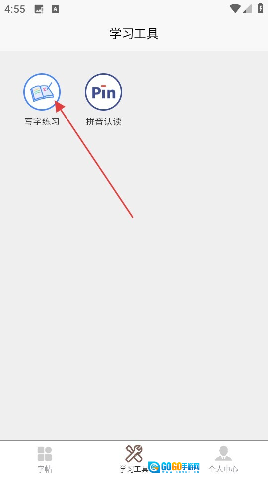 3、在学习工具界面,点击【写字练习】选项,就能进入字帖练习界面。