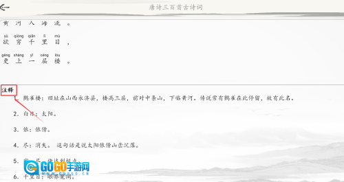 2、名句解析功能会给出详尽的注解,助力用户领会诗歌的深层含义与情感传递,提升对古诗的鉴赏水平。