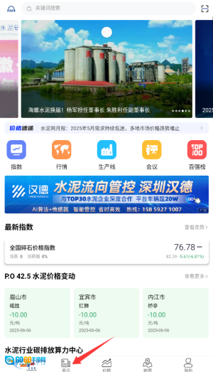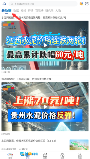 1、登录水泥网后,在首页顶部的导航栏中点击“资讯”按钮,即可进入专业建材市场动态板块。