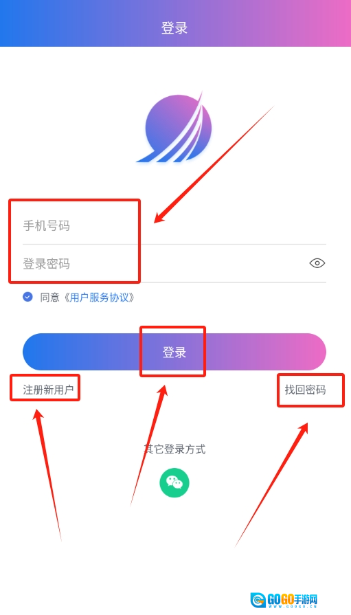 1、启动软件后进入登录页面,输入注册过的手机号与密码,再点击登录按钮就能进入主界面。