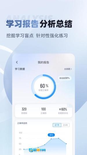 4、学习报告生成功能,会根据用户的练习数据展开分析,协助用户明确自身学习效果,找出知识掌握的薄弱环节,助力用户及时弥补知识漏洞,从而提升学习效率,推动学习成果的进一步提高。