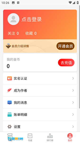 1、打开梦游小说后,点击左上角的“个人中心”图标,即可进入账号登录页面。