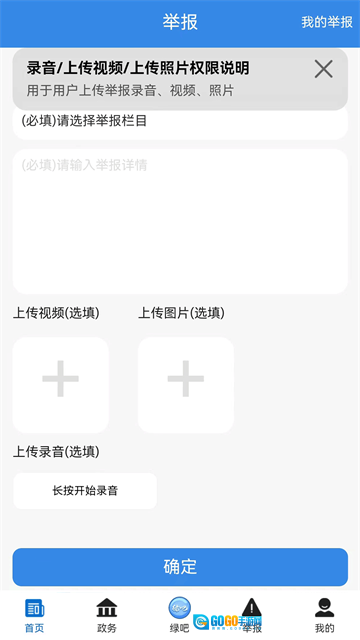 3、问题反馈流程:点击“我要举报”填写事件详情,支持上传照片、视频等证据,处理进度可全程追踪。