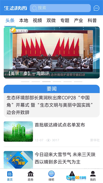 1、登录生态陕西平台后,在首页显眼位置点击“今日头条”板块,该板块汇集了最新的热点新闻内容。