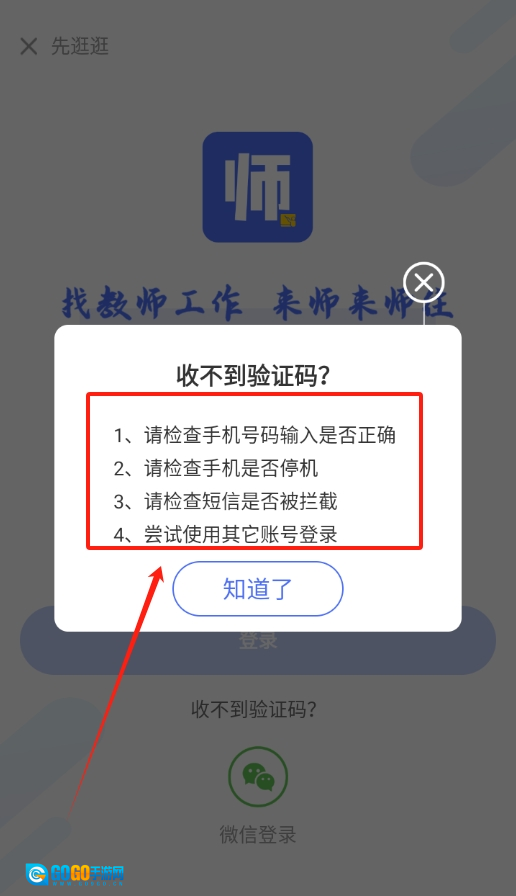 2、要是收不到验证码,不用着急,点击登录页面底部的“收不到验证码”选项,就能查看具体原因并尝试解决。