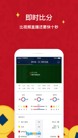 3、实时数据追踪:比赛直播数据更新比电视转播快10秒,涵盖控球率、射门数等20多项关键技术统计指标,所有数据实时刷新。