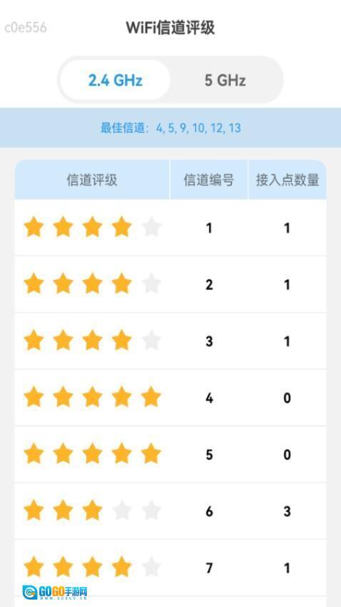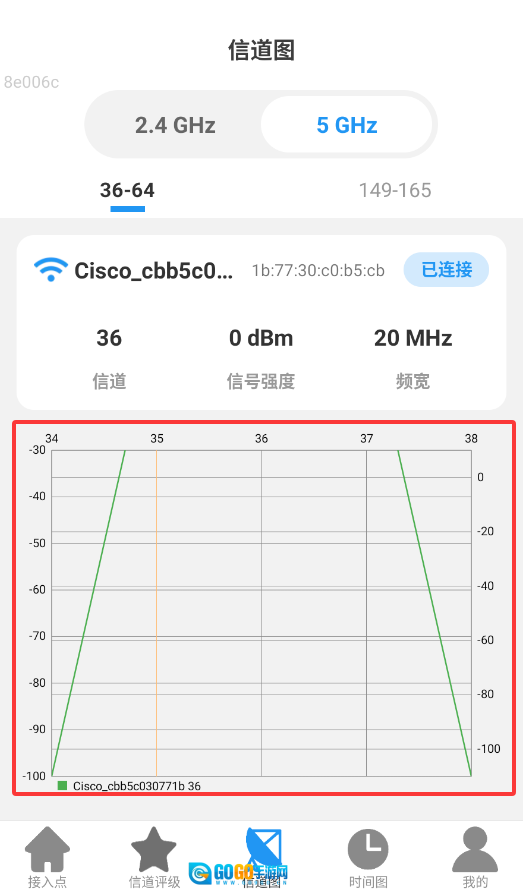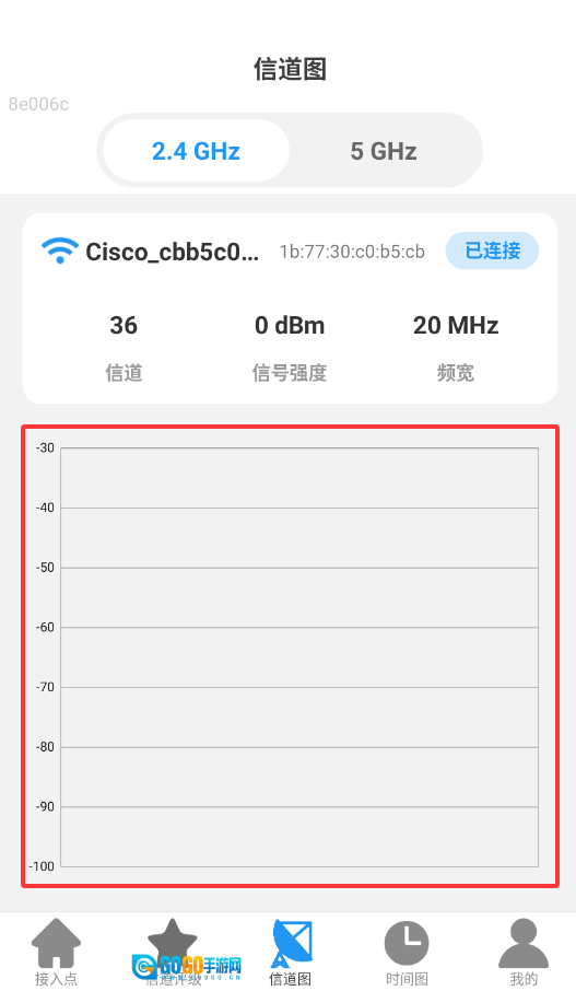 2、点击进入信道图界面后,首先能够查看2.4Ghz频段的信道数据图。