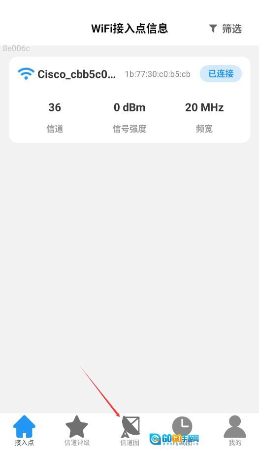 1、开启极速5GWiFi,在界面底部查找信道图功能的入口。