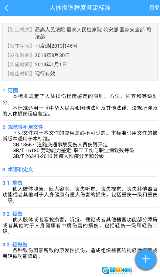2、系统会对各类伤情鉴定规范进行分类呈现,其中包含轻重伤分级等专业评估依据。
