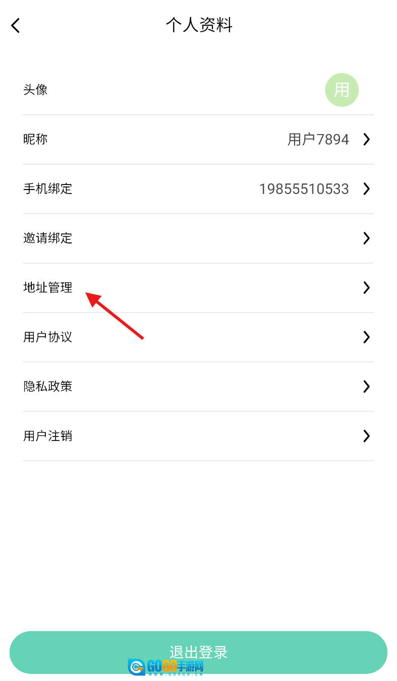 3、进入个人资料板块,然后选择 “地址管理” 功能。