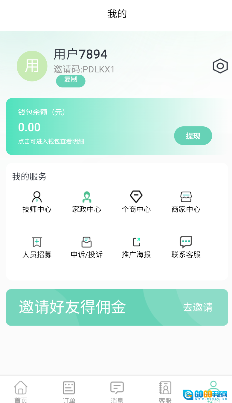 1、打开响匿到店上门按摩广告应用,在主界面下方找到“我的”选项并点击,进入个人中心页面。