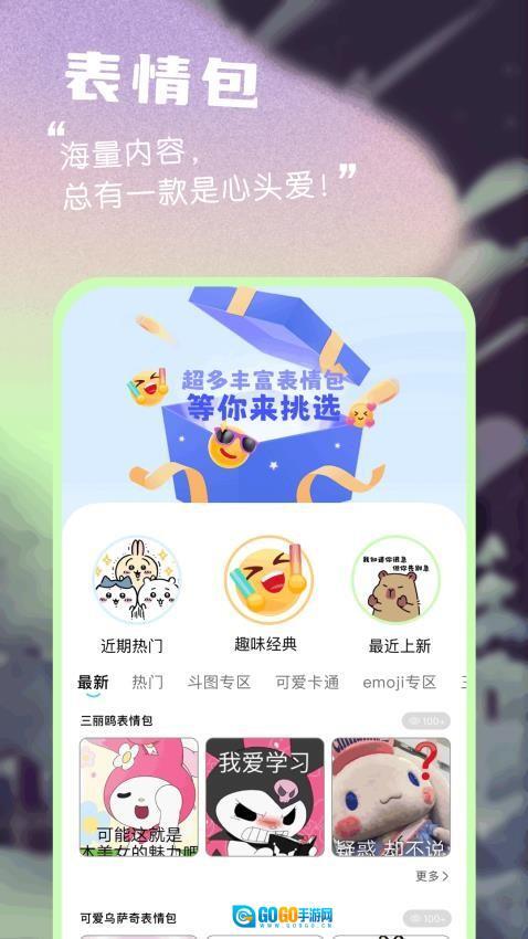 4、社交素材库拥有上万款原创表情包和头像,每周都会更新内容以维持新鲜感,使线上交流更富趣味性和辨识度。