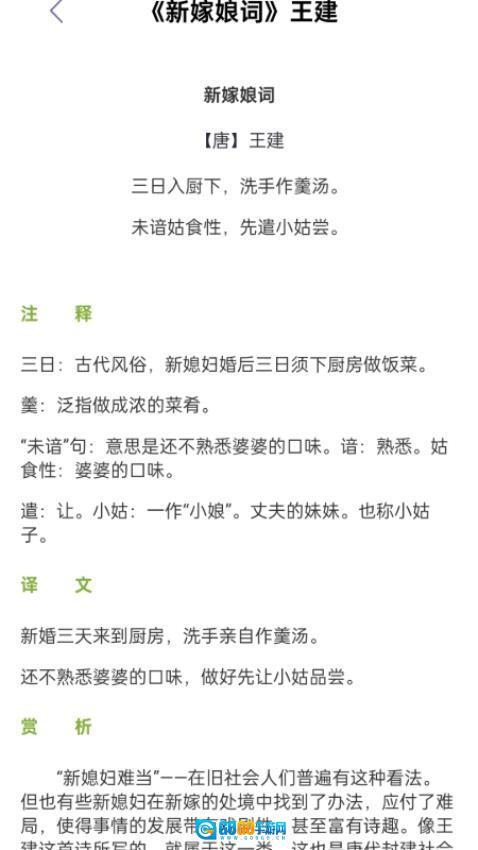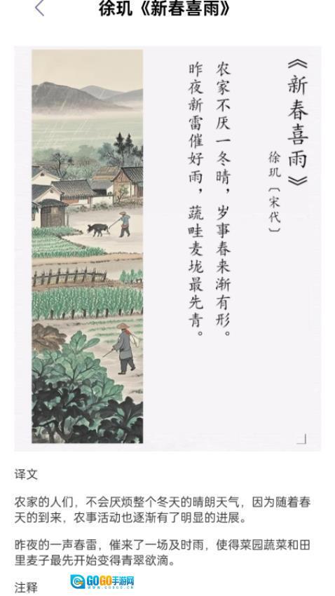 2、每日挑选一首经典诗词展开深度剖析,结合作者的生平轶事与创作背景故事,助力用户从多个维度深入理解文学作品。