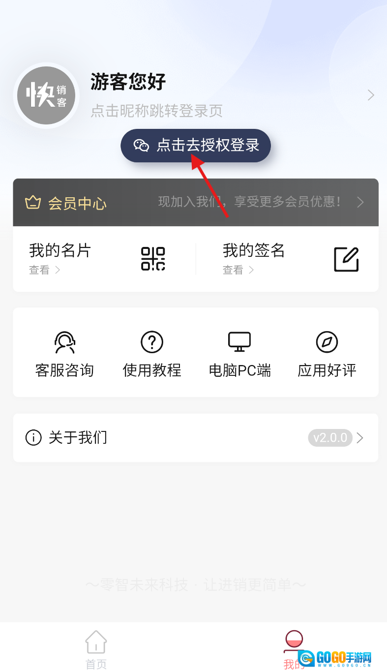 2、进入个人页面后,在界面里找到“点击去授权登录”按钮,轻点该按钮进入登录界面。