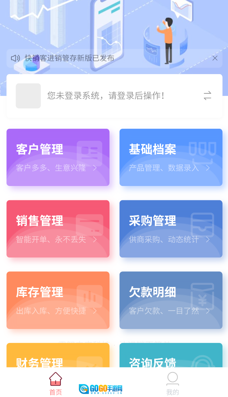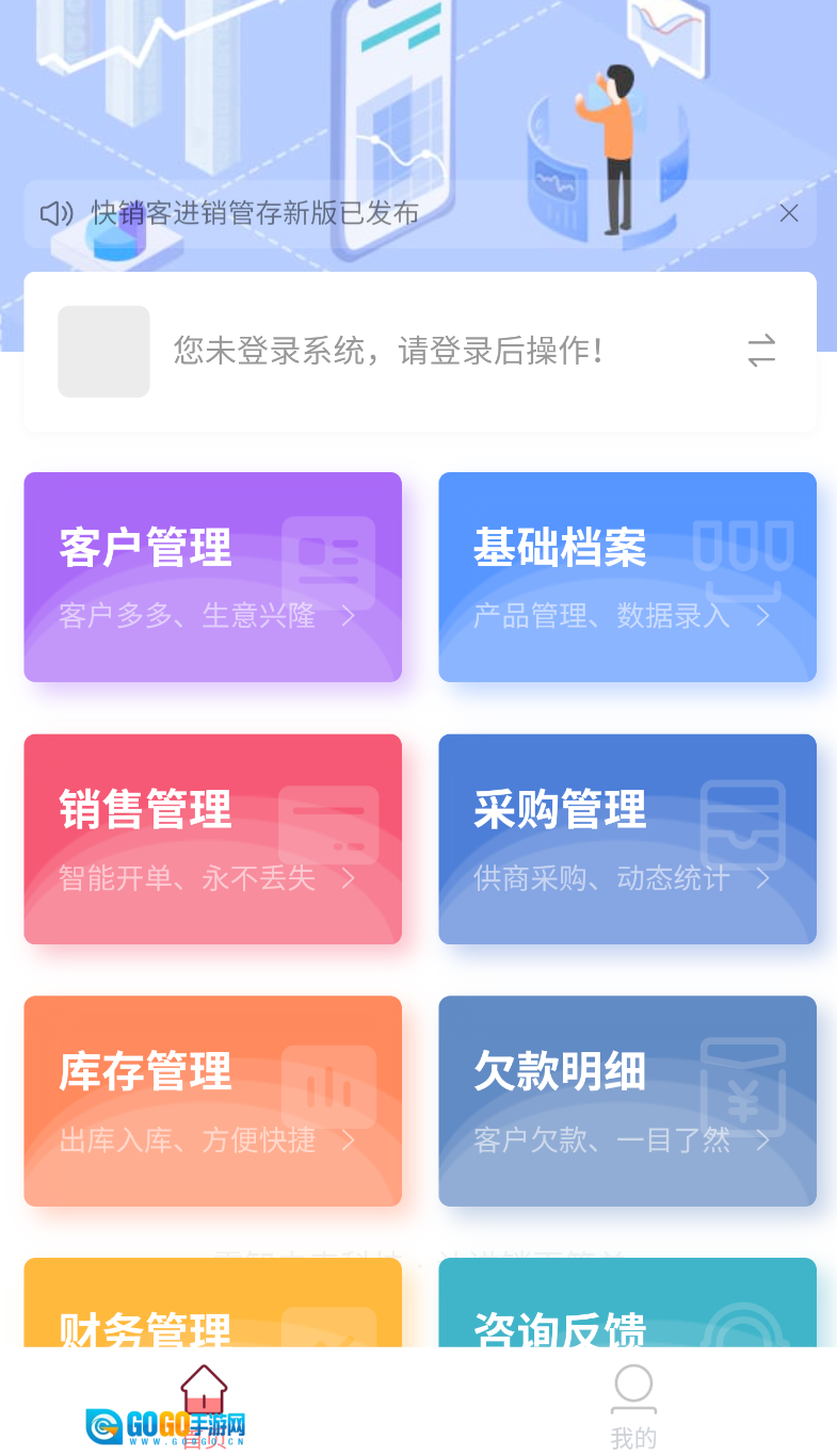 1、安装步骤:在应用商店中搜索“快销客”,下载安装完成后启动该软件。