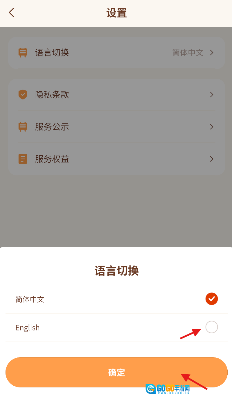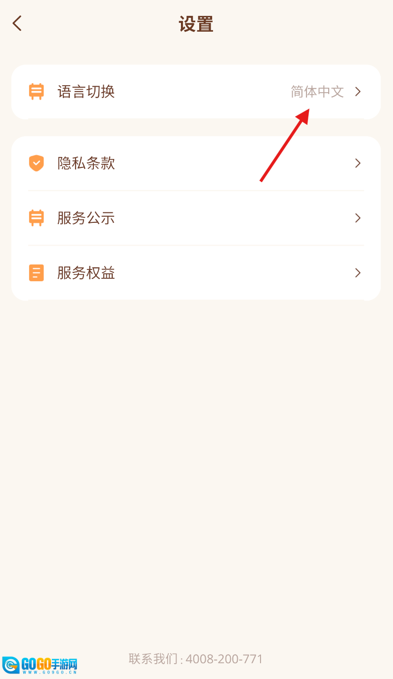 3、在设置界面里,直接找到最上方的“语言切换”选项,点击它就能进入语言选择页面。