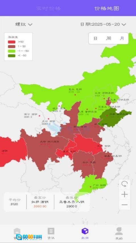 2、采用可视化地图展示区域价格差异,直观呈现全国各城市钢材行情,帮助用户快速锁定价格洼地与高价区域。
