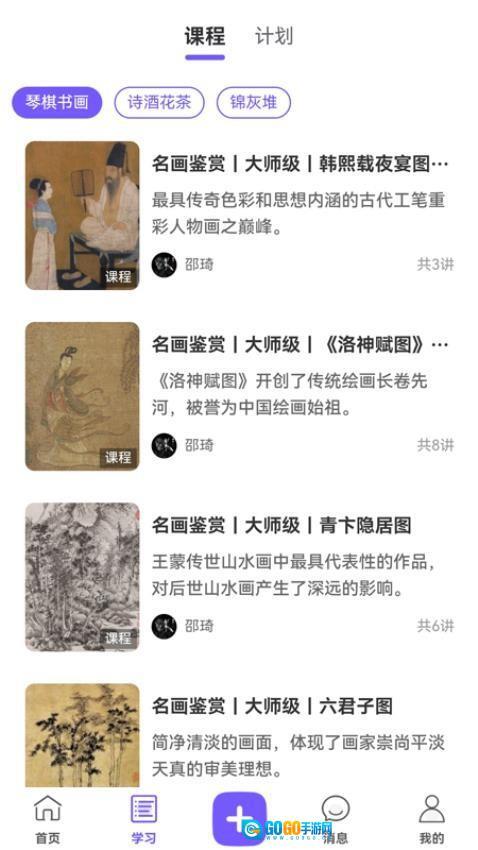 文渊阁帮你轻松入门,这里有琴棋书画,诗词茶酒等超多有趣课程,想学什么自己选。还能定制专属学习计划,每天学多少自己说了算。软件里每天都会推送精选的国学内容,能看到其他爱好者分享的干货,自己也能发帖交流。