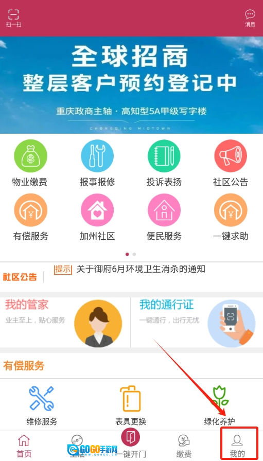 3、 登录成功后回到首页,在功能列表里找到 “物业缴费”,点击进去就能交物业费了。