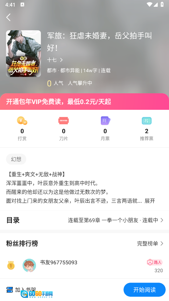 3、接着进入小说详情页,点击页面左下角的“加入书架”按钮。