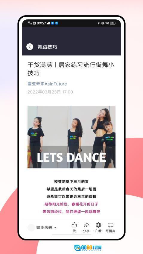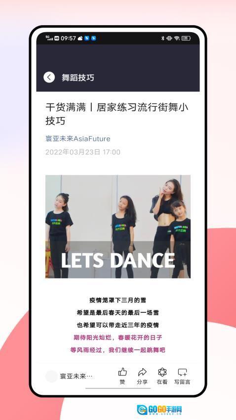 1、零门槛学习体验让舞蹈爱好者轻松入门,平台将专业舞蹈动作拆解为易懂步骤,配合慢动作演示与文字注解,即使毫无基础也能快速掌握要领。