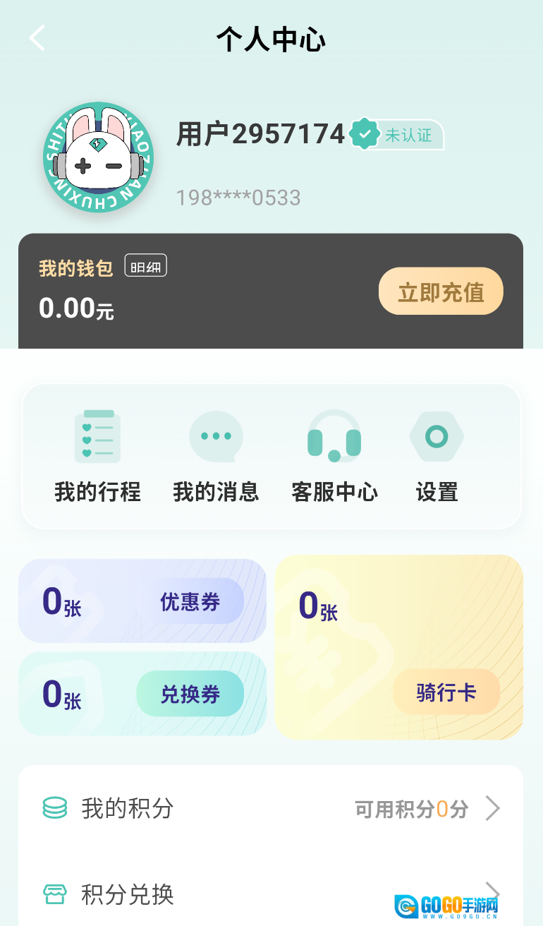 1、打开小钻出行,点击界面左上角头像,进入个人中心页面。