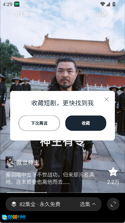 随意点击任意一部短剧就能进入播放页面,在这个页面中可以完成对该短剧的收藏等相关操作。